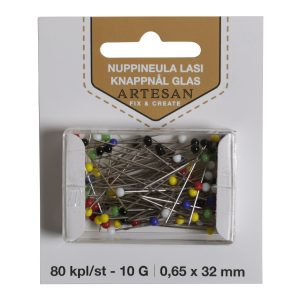 Flashpin nuppineulat, erittäin ohut 0,40 x 34 mm, 80 kpl rasia, lasinuppi