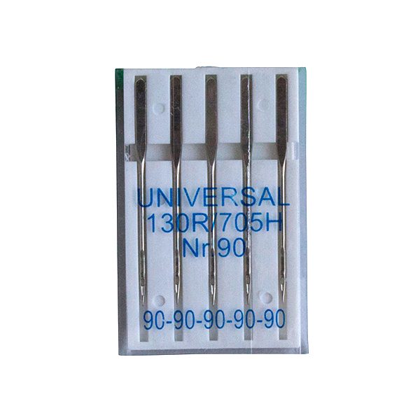 Yleisompelukoneneula paksummille materiaaleille. Hiottu silmä, joka ei riko lankaa. Soveltuu vahvojen materiaalien, esim. farkkujen ompeluun. 5 kpl nro. 90 neuloja.
